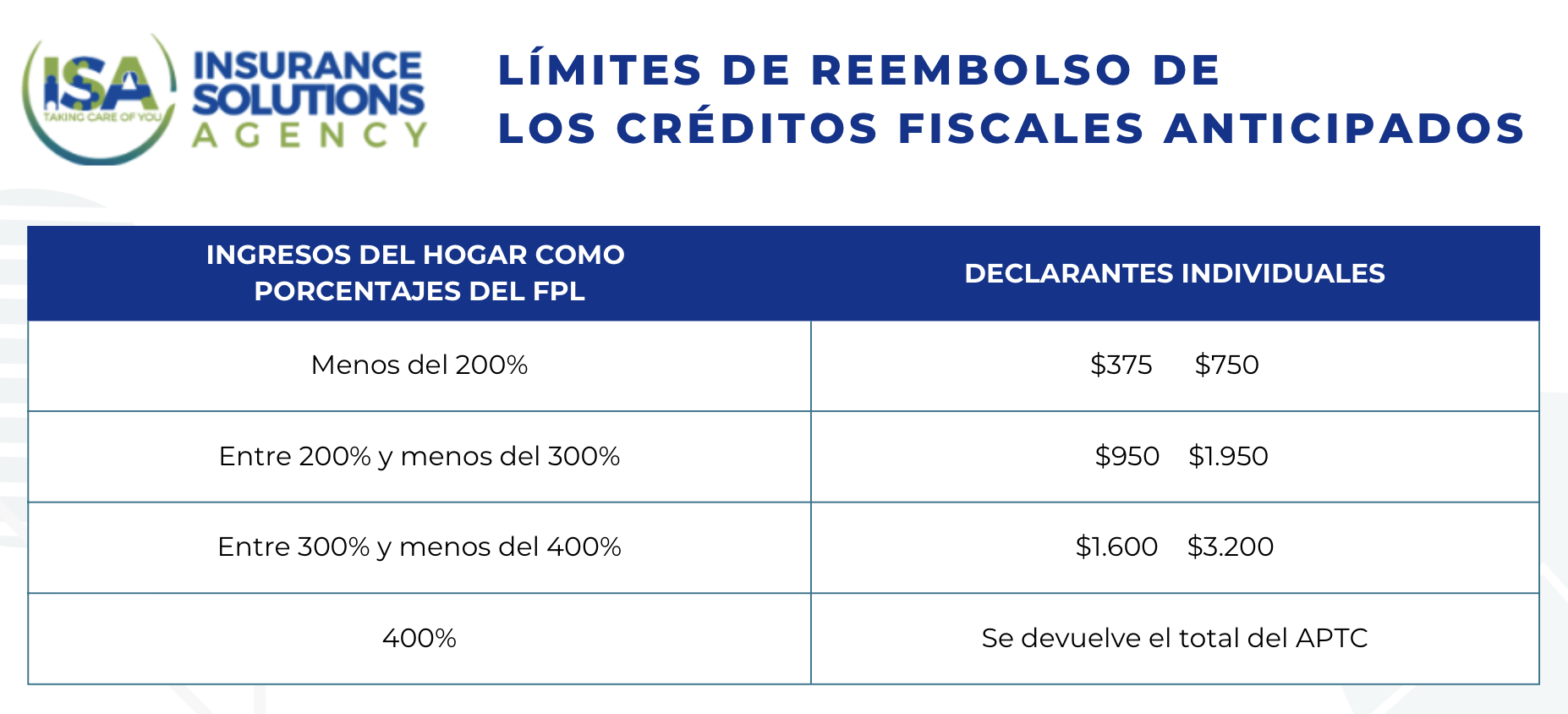El APTC se basa en el ingreso anual de tu hogar y el tamaño de tu familia, y para que seas elegible, debes estar entre el 100% y el 400% del nivel federal de pobreza (FPL). Esta tabla es muy importante para determinar tu elegibilidad para Obamacare.